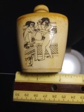 Asian 3" Tall Fertility Snuff Bottle Bone Handmade Collectable Sexy Scenes