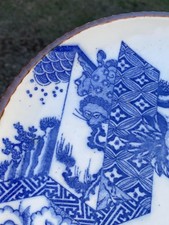 Antique Meiji Japanese Igezara Transferware Lion Blue White Porcelain Plate 10"