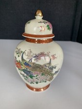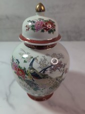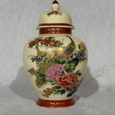 VTG Satsuma #172 Floral Peacocks Porcelain Ginger Jar / Urn w/ Lid 8" Japan