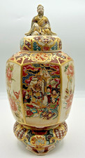 Vintage Japanese Pottery Hand Painted Satsuma Lidded Urn Vase Ginger Jar