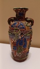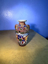 Japanese Satsuma Moriage Vase Urn w Handles HandPainted 6"