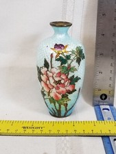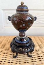 Antique Meiji 1910s Japanese Goldstone Cloisonne' Urn/ Stand Butterfly flower 7"