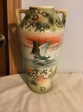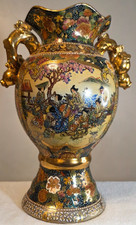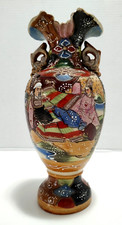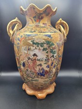VTG Antique Japanese Vase Urn Satsuma. 13.5"H Family with Rose Handles Used