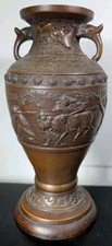 Antique Bronze Vase Urn Ornate Samurai Scene Patina