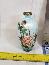 Antique Asian Japanese Brass Champleve Cloisonné Enamel Urn Vase Handles 6"