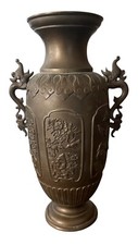 Vintage Japanese Bronze/Copper Alloy Vase With Dragon Handles Vase~Urn