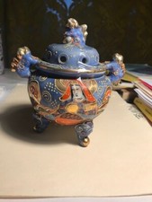 Antique RARE Japanese Meiji Moriage Satsuma Handpainted Urn With Lid And Vase...