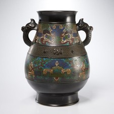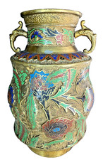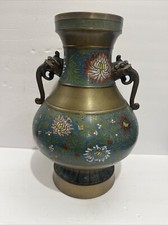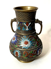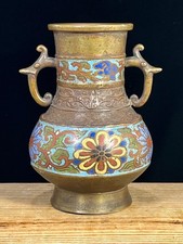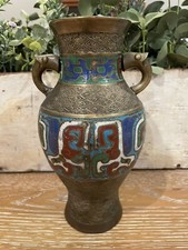 Vintage Japanese Antique Champleve Cloisonne & Bronze Urn Vase