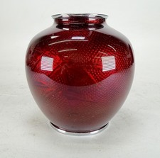 Pigeon Blood Red Japanese Inaba Cloisonné Enamel Vase Urn 4.75”