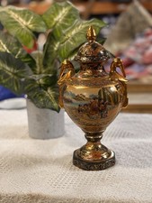 GOLD CASTLE Japan Antique Satsuma Gilded Gold Moriage Urn With Lid Hand Painted