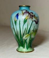 antique 19th century Japanese Meiji miniature foil enamel flower bronze vase urn