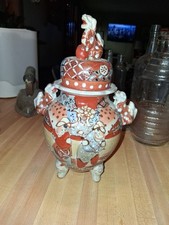 Antique Japanese Pottery Vase Jar Ginger Urn w/ Lid Satsuma Meiji Period Foo Dog