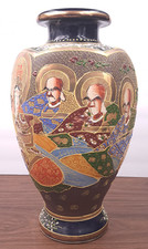 Vintage Japanese Black and Gold Moriage Satsuma Vase / Urn 12" Antique