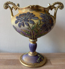 Vintage Royal Satsuma Vase Urn 11 3/4" Floral W/ Gold Japan