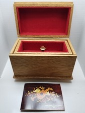 Vintage Italian Reuge Inlay Wooden Swiss Music Box Floral Plays Blue Danube