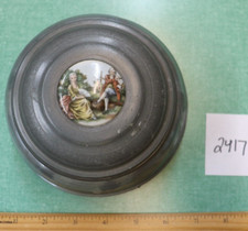 VINTAGE ROUND TRINKET MUSIC BOX CERAMIC INLAY OF A COUPLE