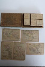 ATLAS GEOGRAPHY 35 CUBE PUZZLE 6 LITHO MAPS 1889 FRENCH CHILD ANTIQUE TOY