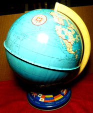 1950's J Chein & Co Tin 7 1/2 Inch World Globe Made in NJ USA Vintage Toy