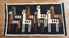 Vintage Peruvian Alpaca Pictorial Kilim Wool Handmade Wall Rug