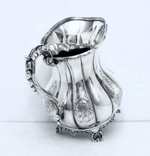 1901 BARKER BROS SILVER CO. ENGLAND EDWARDIAN CHASED RIBBED WAER PITCHER 55 FLOZ