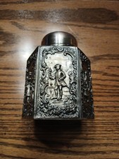 Antq Barbour International Dutch Figural Scenic Repousse Silver Plate Wood Lined