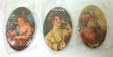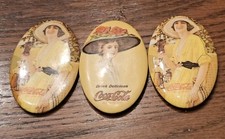 Lot 3 Vintage Original 1973 Coca Cola Small Oval Pocket Mirrors Ladies Hats