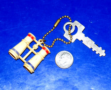 Cute Vintage Binocular Keychain Fob w/Antique Flat Square-Cut Key