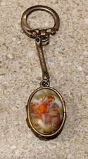 Vintage MARY CHESS ANTIQUE BRONZE Keychain Oval Thick Filigree Back Doesn'tOpen