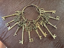 Set of 20 Large Skeleton Keys On A Big Ring Antique Brass Tone Renaissance Prop