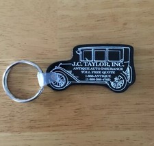 Vintage Keychain J.C. TAYLOR, INC. Key Fob Ring Antique Auto Insurance USA Made