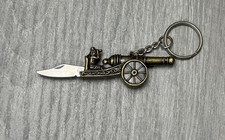 Unique Cannon Miniature Knife Keychain w/ Folding Blade Antique Style Brass Tone