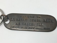 Antique LaSalle State Bank Brass ? Keychain, Indiana Return Postage Key Ring