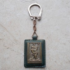 ST CHRISTOPHER Vintage Keychain key ring France antique vtg garage metal #10