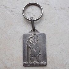 ST CHRISTOPHER Vintage Keychain key ring France antique vtg garage metal #12