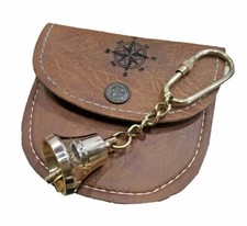 Nautical Collectible Solid Brass Sound Bell Key Chain w/ Leather Case for Gift