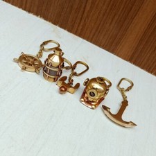 Antique Keychain Ships Wheel Schooner Sailboat Gold Bakelite Plastic