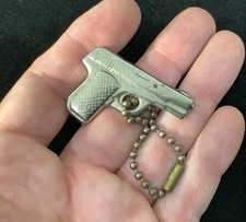 Very Cool Vintage All Metal Miniature Semi Auto Pistol Gun Keychain Toy