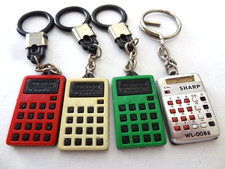 4 vintage toy advertisement calculators SANYO SHARP keychains keyring