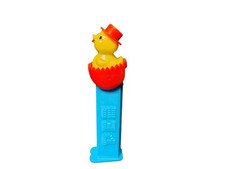 VINTAGE PEZ HATCHING CHICK BLUE STEM RED HAT HUNGARY YELLOW BIRD DISPENSER TOY
