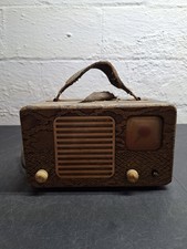 vintage trav-ler radio model 5028-a w/ cord works 1947 leather handle good Z39