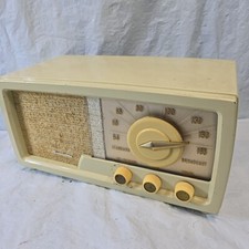 1950 Firestone 4-A-126 Vintage 6 Tube AM Radio Bakelite Cream White Case Works