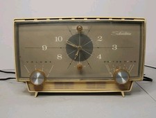 Vintage Mid-1950s Silvertone Alarm Clock Tube Table Radio Model 6018