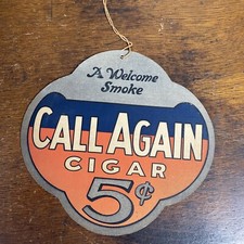 Bright Vintage Hanging Advertising Sign for " Call Again Cigar 5 Cents" *