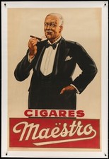 Cigares Maëstro (Belgian) Original Linen-Backed Advertising Poster c. 1920's