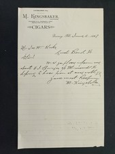 1897 antique M KINGSBAKER CIGARS quincy il LETTERHEAD LETTER