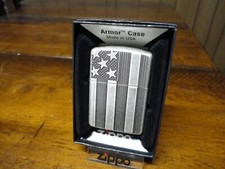 AMERICAN FLAG ANTIQUE SILVER PLATE ARMOR ZIPPO LIGHTER MINT IN BOX