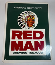 VINTAGE ORIGINAL RED MAN CHEWING TOBACCO VINYL PLASTIC ADVERTISING SIGN 16 X 12