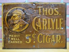 THOS CARLYLE 5c CIGAR Antique Advertising Embossed Sign CHAS SHONK LITHO CHICAGO