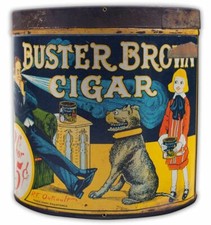 BUSTER BROWN CIGAR CAN SHAPED 15" HEAVY DUTY USA MADE METAL ADVERTISING SIGN