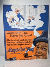 ORIGINAL ANTIQUE MAYO'S CUT PLUG TOBACCO ADVERTISING CARDBOARD SIGN - CUT DOWN